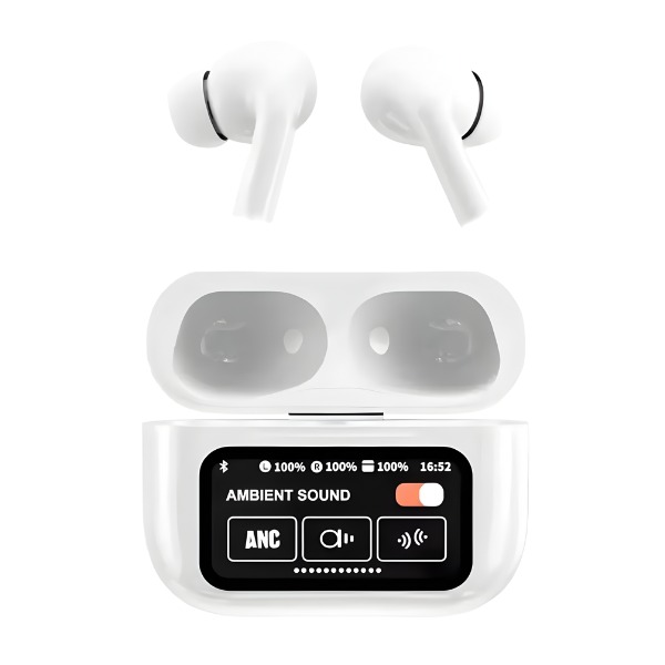 Experience superior audio with the A9 Pro wireless earbuds, featuring Active Noise Cancellation (ANC) and a full-color smart touch screen display on the charging case for effortless control. Manage music, volume, calls, and settings directly from the intuitive LCD interface.
